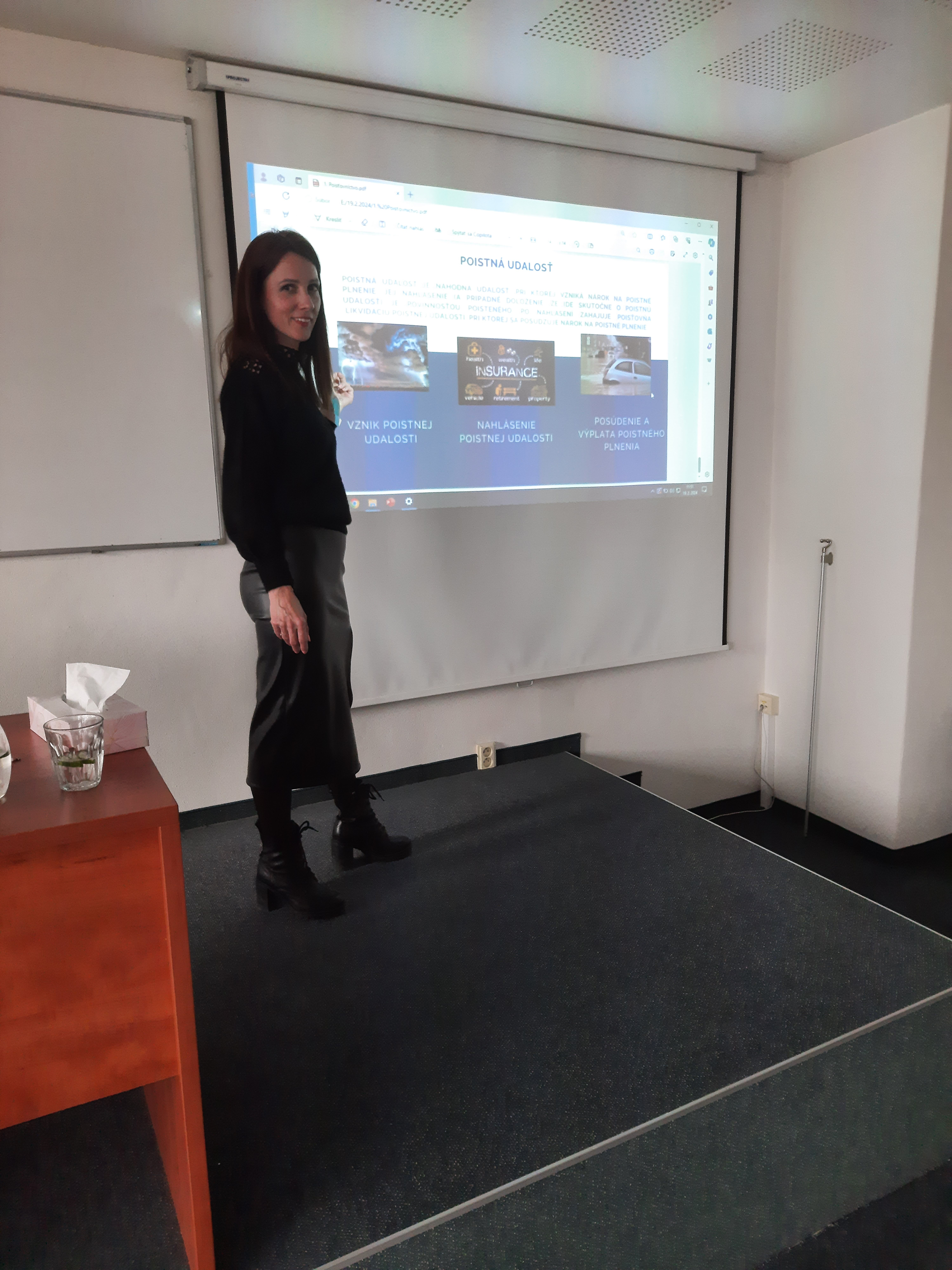 Dňa 19. februára 2024 sa uskutočnila na predmete „Poisťovníctvo pre podnikateľa“ hosťovaná prednáška na tému „Možnosti životného poistenia pre podnikateľa“.