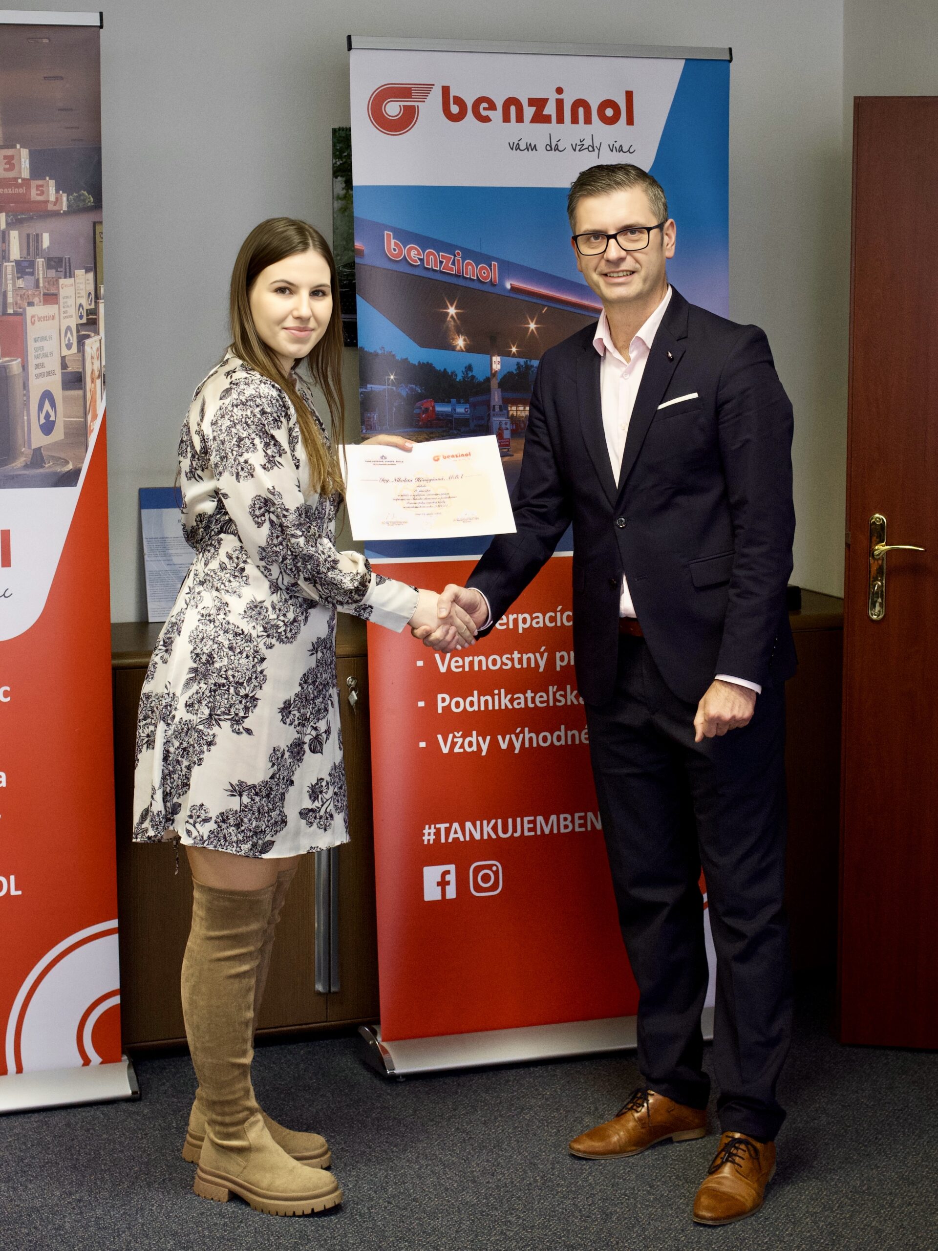 Odovzdávanie cien generálneho sponzora Benzinol SLOVAKIA s. r. o. v súťaži o najlepšie záverečné práce prebehlo dňa 19.4.2023 na pôde Paneurópskej vysokej školy. Ocenené absolventky a absolvent si s úsmevom prevzali svoje ceny a radovali sa z úspechu ich výtvorov. Konečné poradie bolo nasledovné.