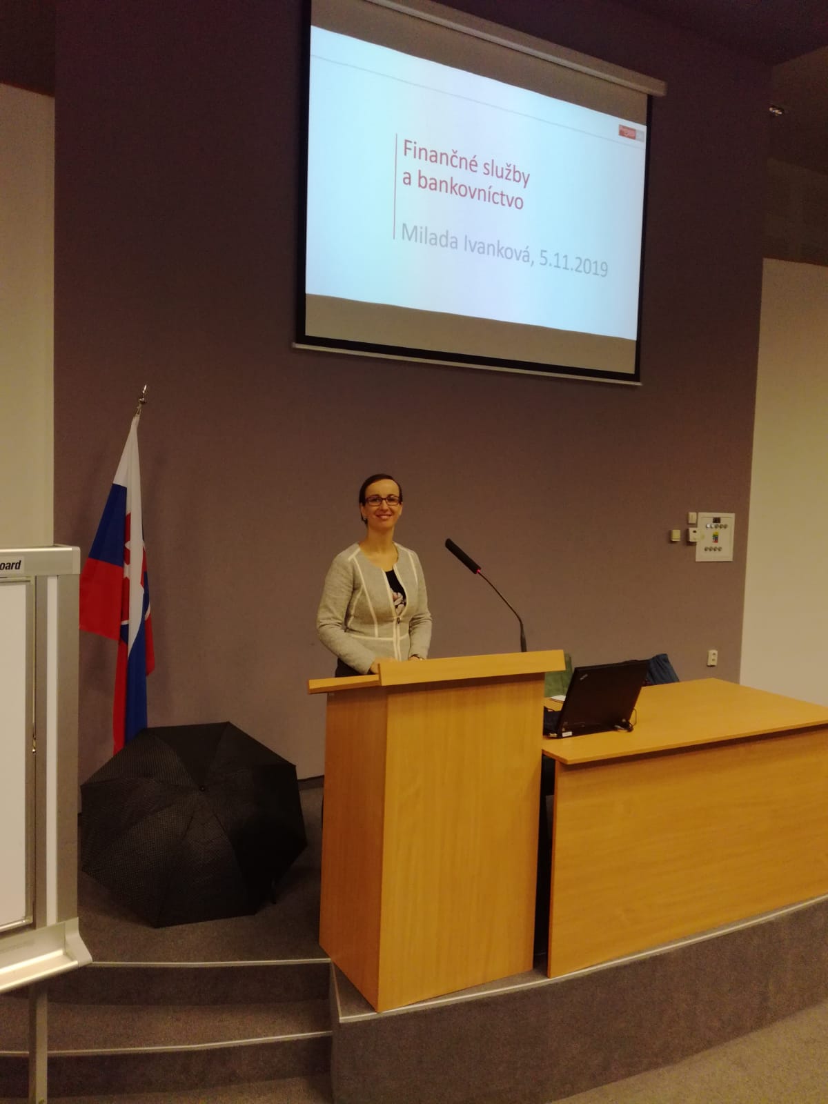 Dňa 5.11.2019 sa vo Veľkej aule na Tematínskej ul. uskutočnila druhá z cyklu hosťovaných prednášok na tému „Finančná gramotnosť“ s názvom „ Finančné služby a bankovníctvo“.