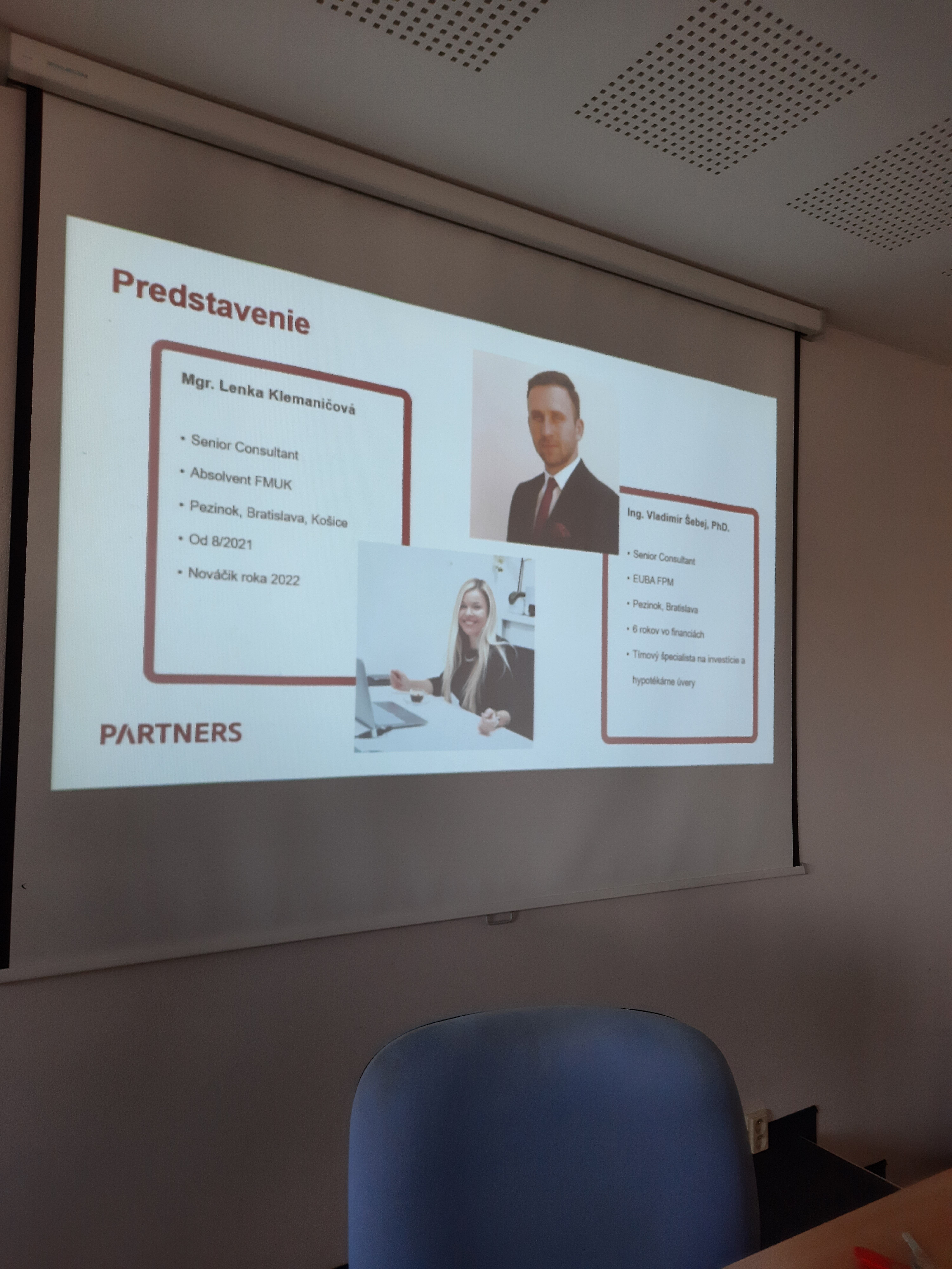 Na deň 19.3.2024 zorganizovala vyučujúca predmetu Hospodárska politika Ing. Stanislava Veselovská, PhD. hosťovanú prednášku v spolupráci s Mgr. Miladou Ivánkovou zo spoločnosti PARTNERS. V rámci základov finančnej gramotnosti a domácej finančnej politiky Ing. Vladimír Šebej, PhD. a Mgr. Lenka Klemaničová hravou formou zaujali študentov 1. ročníka bakalárskeho štúdia našej fakulty do ekonómie v praxi. Na záver prednášky sa študenti zapojili do kvízu a 6 najúspešnejších študentov ocenili bezplatným školením vo firme PARTNERS.