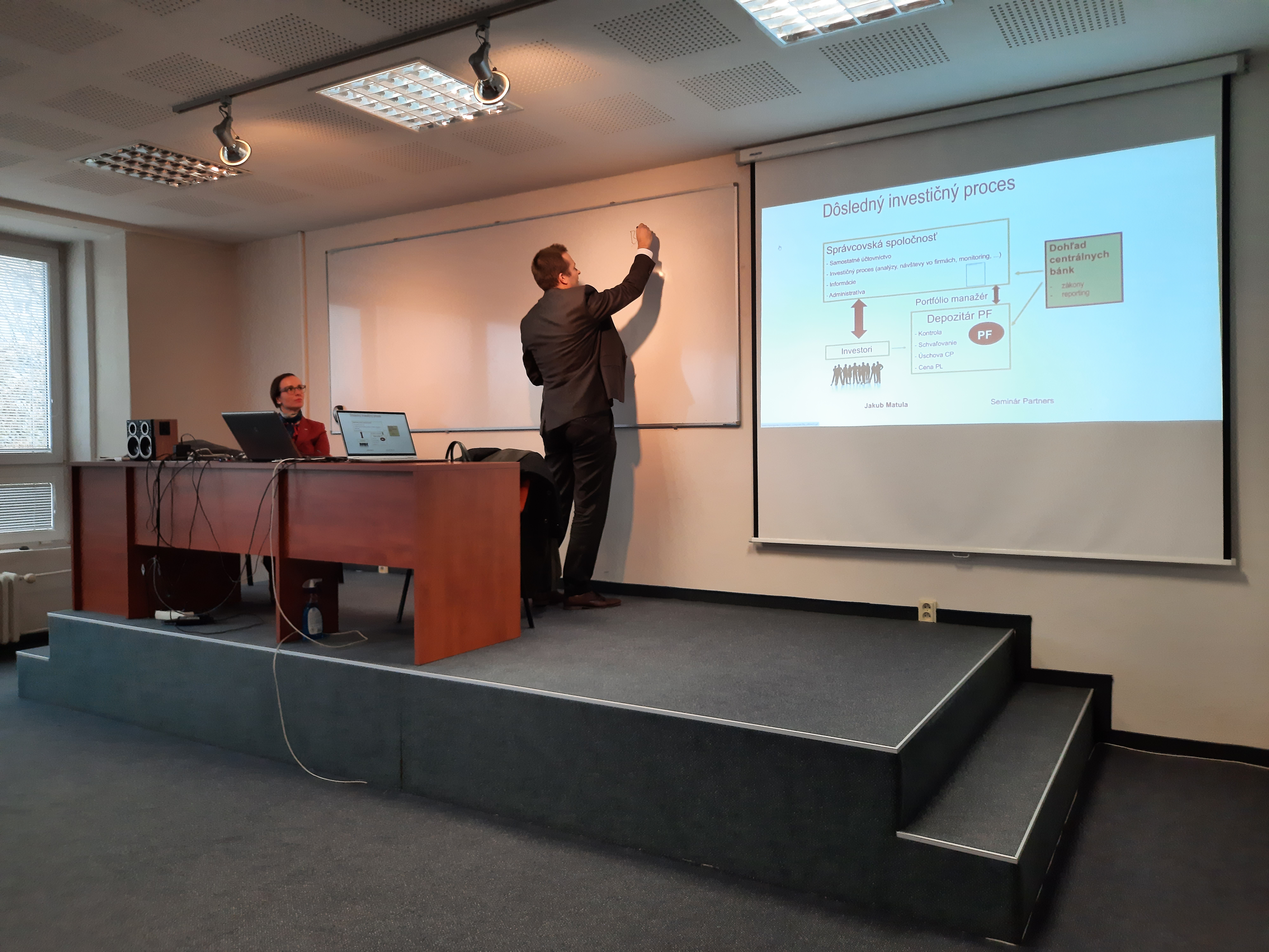 Prednášajúcim hosťom bola Mgr. Milada Ivanková a Mgr. Jakub Matula z Partners Group SK, ktorá obohatila vedomosti študentov z pohľadu praxe a orientácie sa v oblasti investovania.