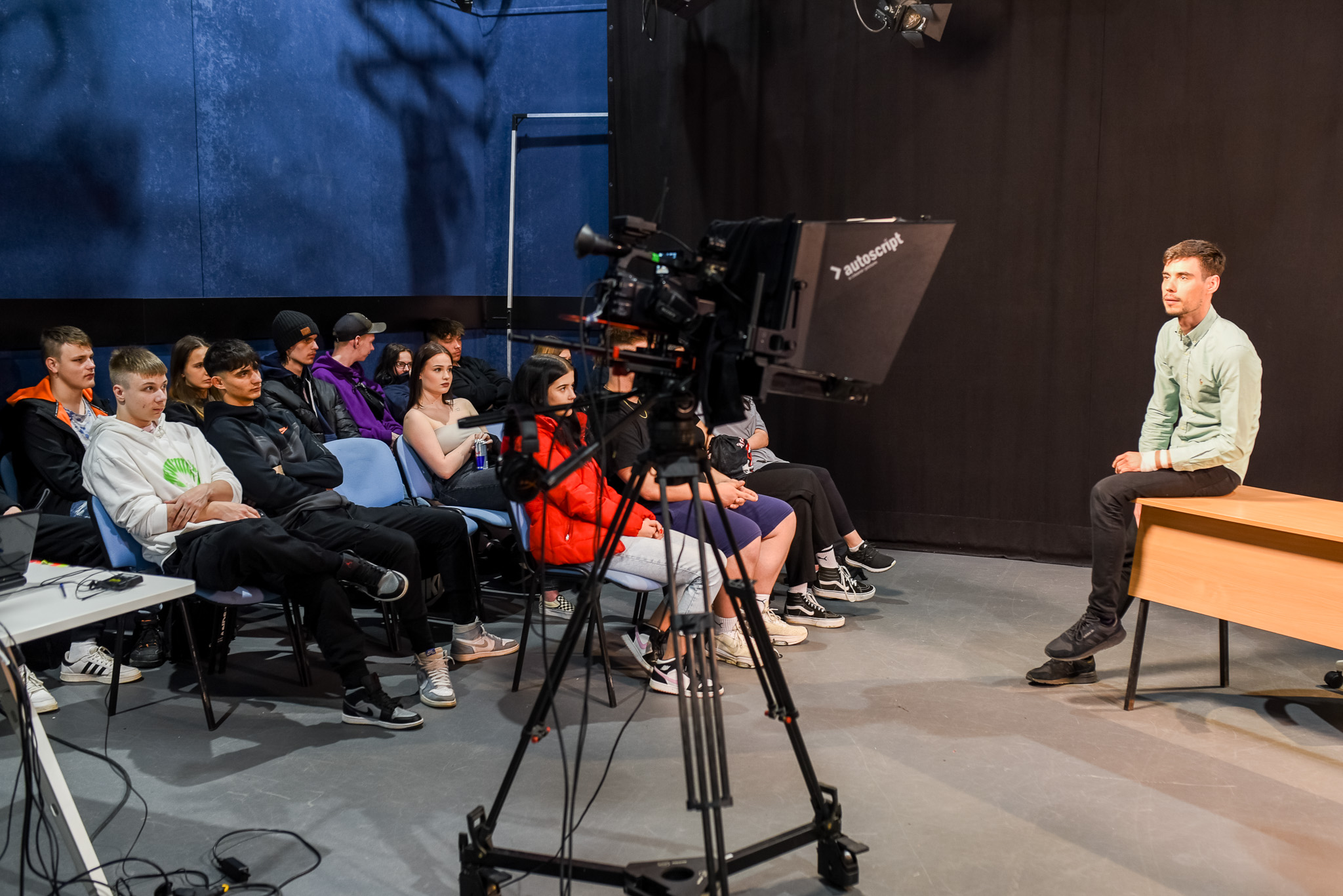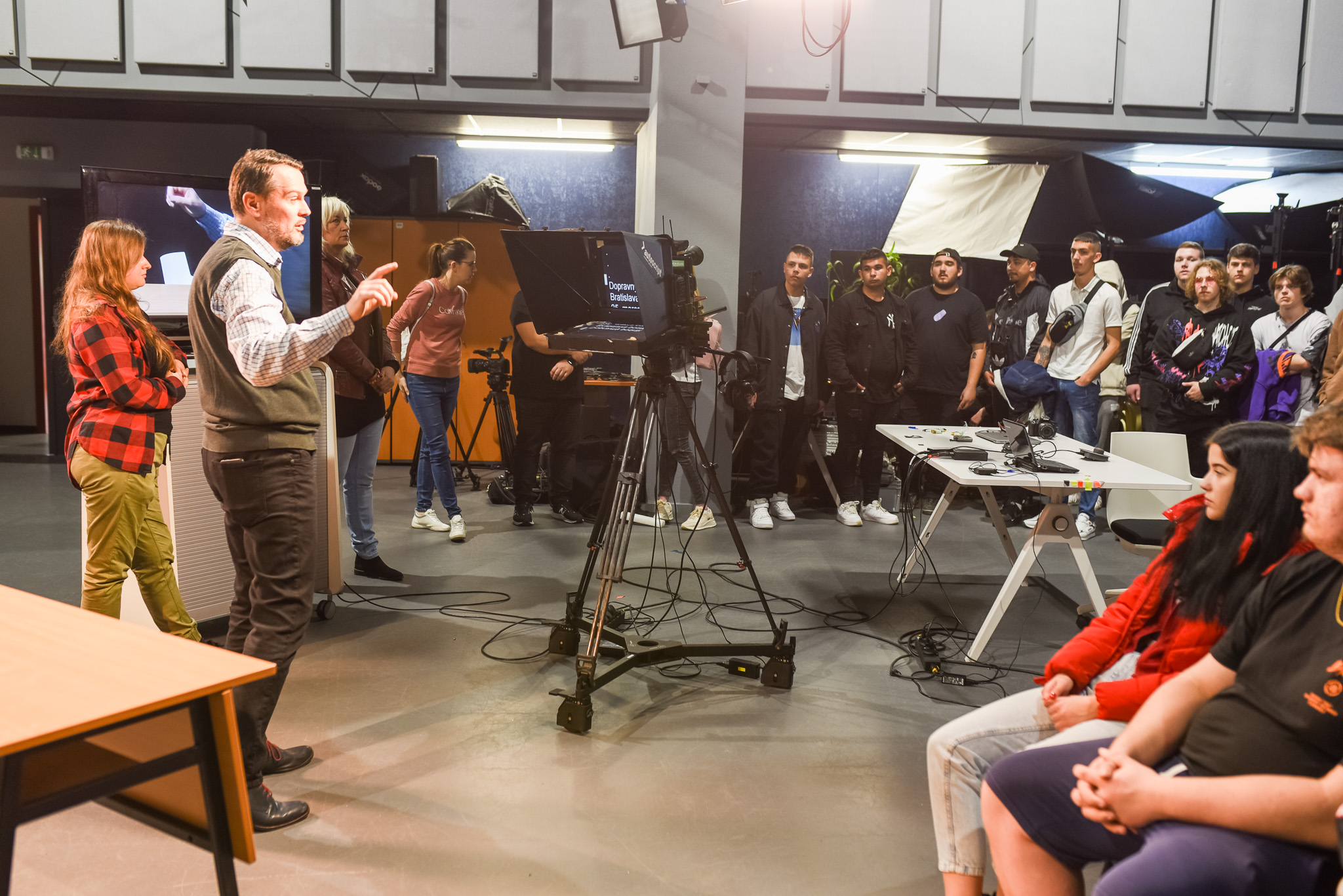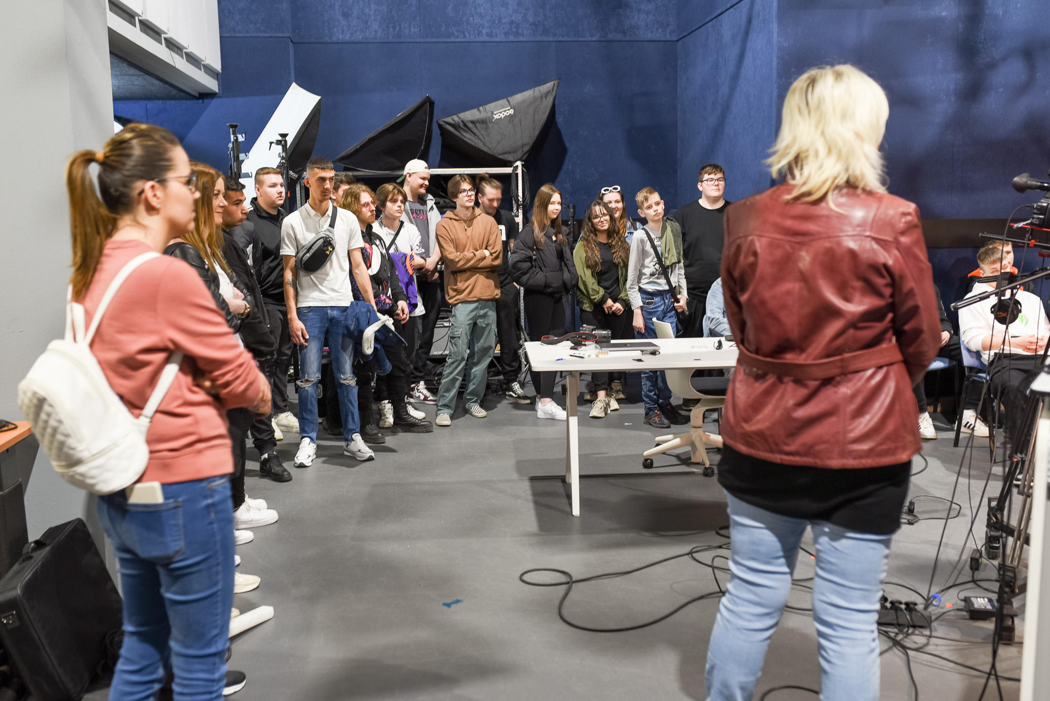 Dňa 20.04.2023 sme na Fakulte masmédií privítali študentov zo sterdnej odbornej školy vo Veľkom Ktrtíši. Študenti absolvovali exkurziu v televíznom a rozhlasovom štúdiu. Exkurziu sme zrealizovali pre žiakov z odboru grafik digitálnych médií.