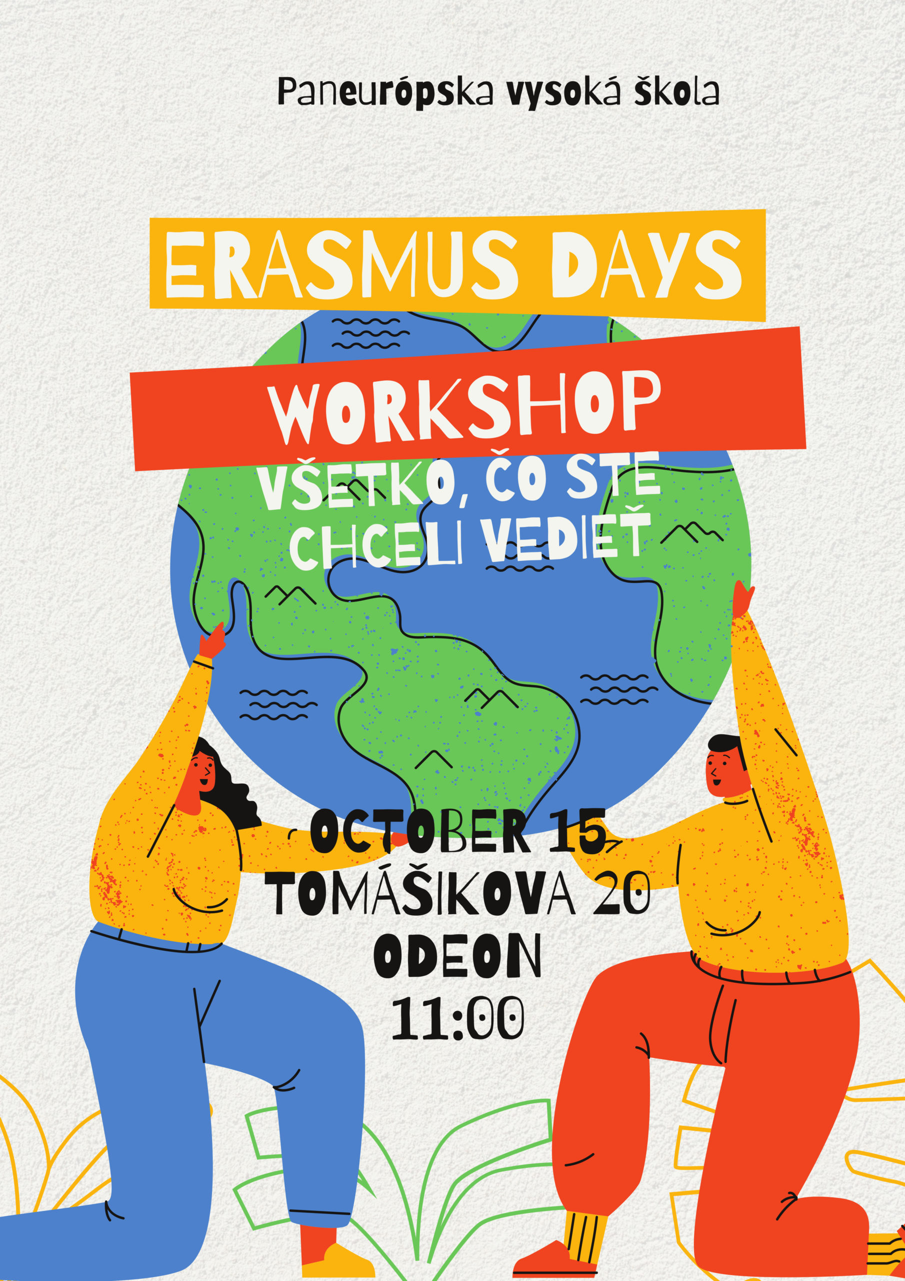 V nadväznosti na prebiehajúce prihlasovanie sa do programu Erasmus v letnom semestri 2021 a tzv. Erasmus Days, ktoré prebiehajú v dňoch 13.-15. októbra, si dovoľujeme pozvať všetkých záujemcov o program Erasmus na informačný workshop.