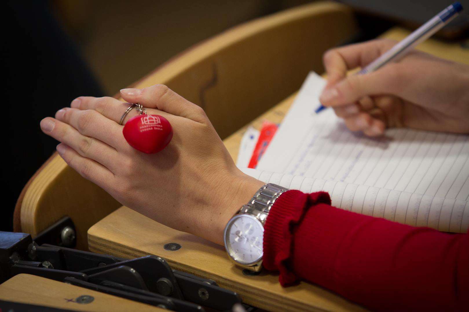 Každý z prítomných však dostal aj niečo naviac – kľúčenku s logom PEVŠ v tvare malého srdiečka. Drobná pozornosť má dokázať, že PEVŠ na svojich študentov a zamestnancov myslí a to nielen na Valentína. Dúfame, že sa vám darček páčil, a že ste si užili sviatok lásky s tými, ktorých milujete.