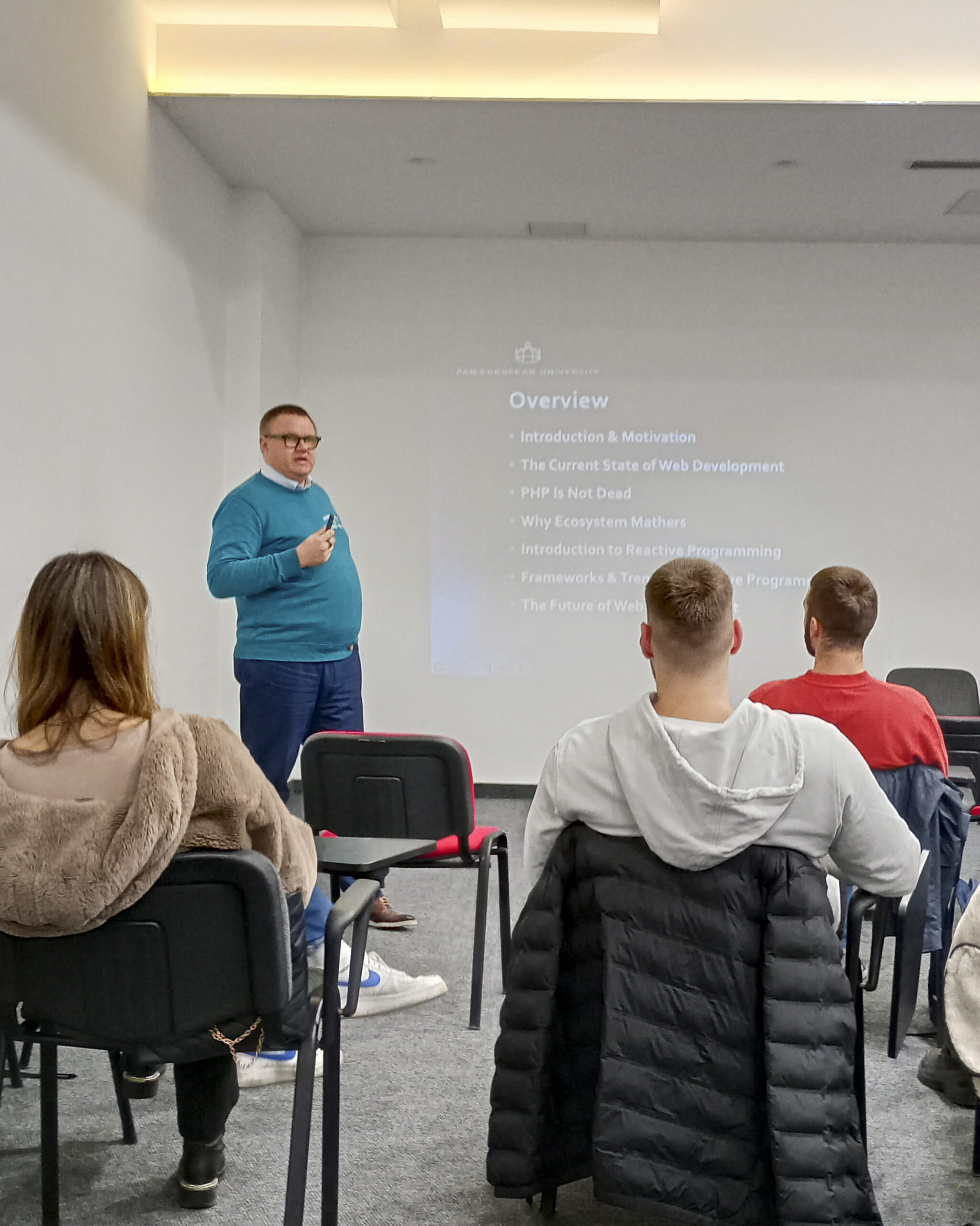 Mgr. Michal Drobný predstavil aktuálne „Trends in Web Technologies and Reactive Programming“, pričom poukázal na najnovšie prístupy a technológie v oblasti webového vývoja..