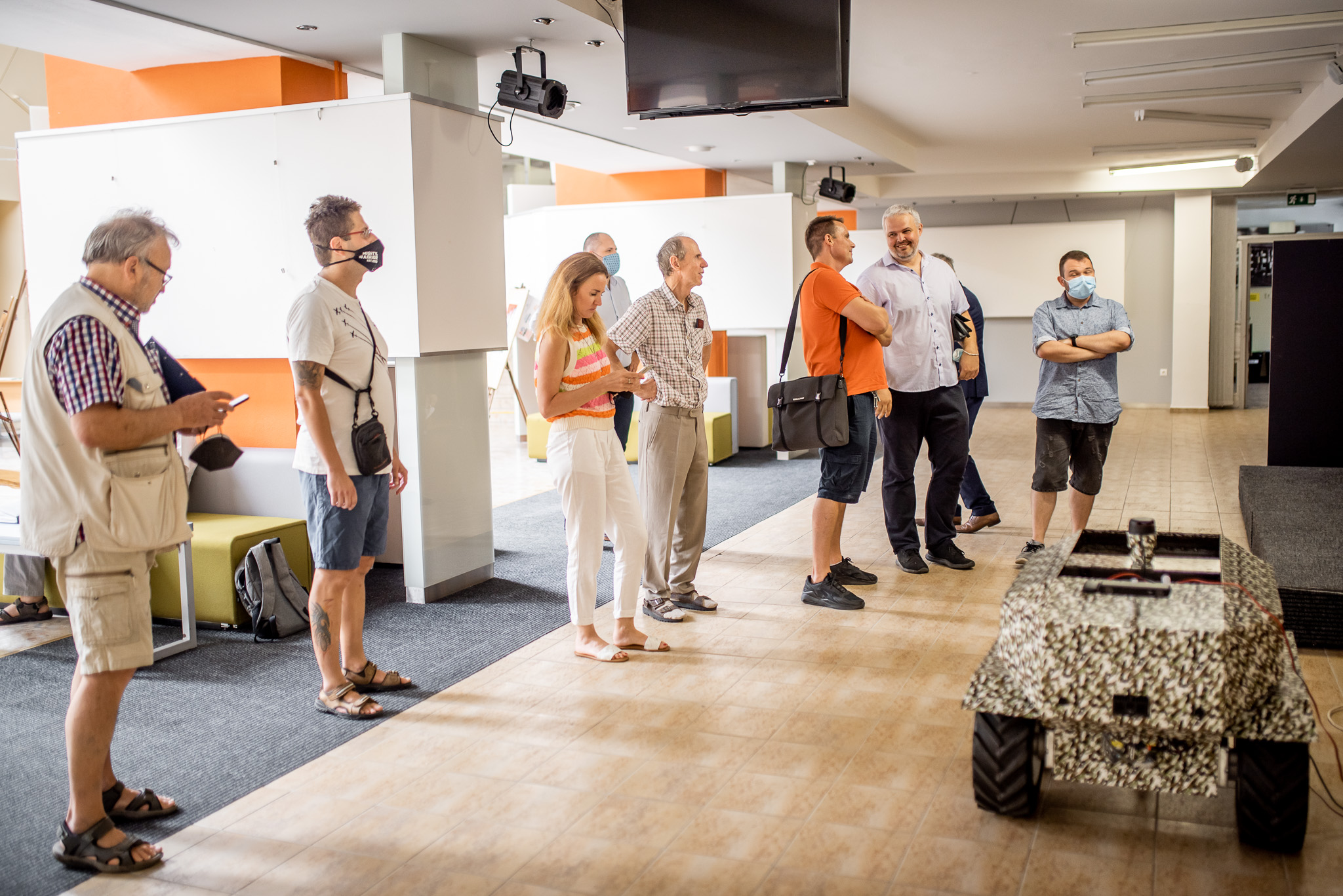 za účasti prizvaných hostí z univerzít, firiem a študentov. Pracovné stretnutie bolo realizované v priestoroch FI PEVŠ v Bratislave. Cieľom stretnutia bola prezentácia dosiahnutých výsledkov riešenia projektu, výmena a poskytnutie informácii pre ďalšie využitie UI v priemysle a autonómnych vozidlách.