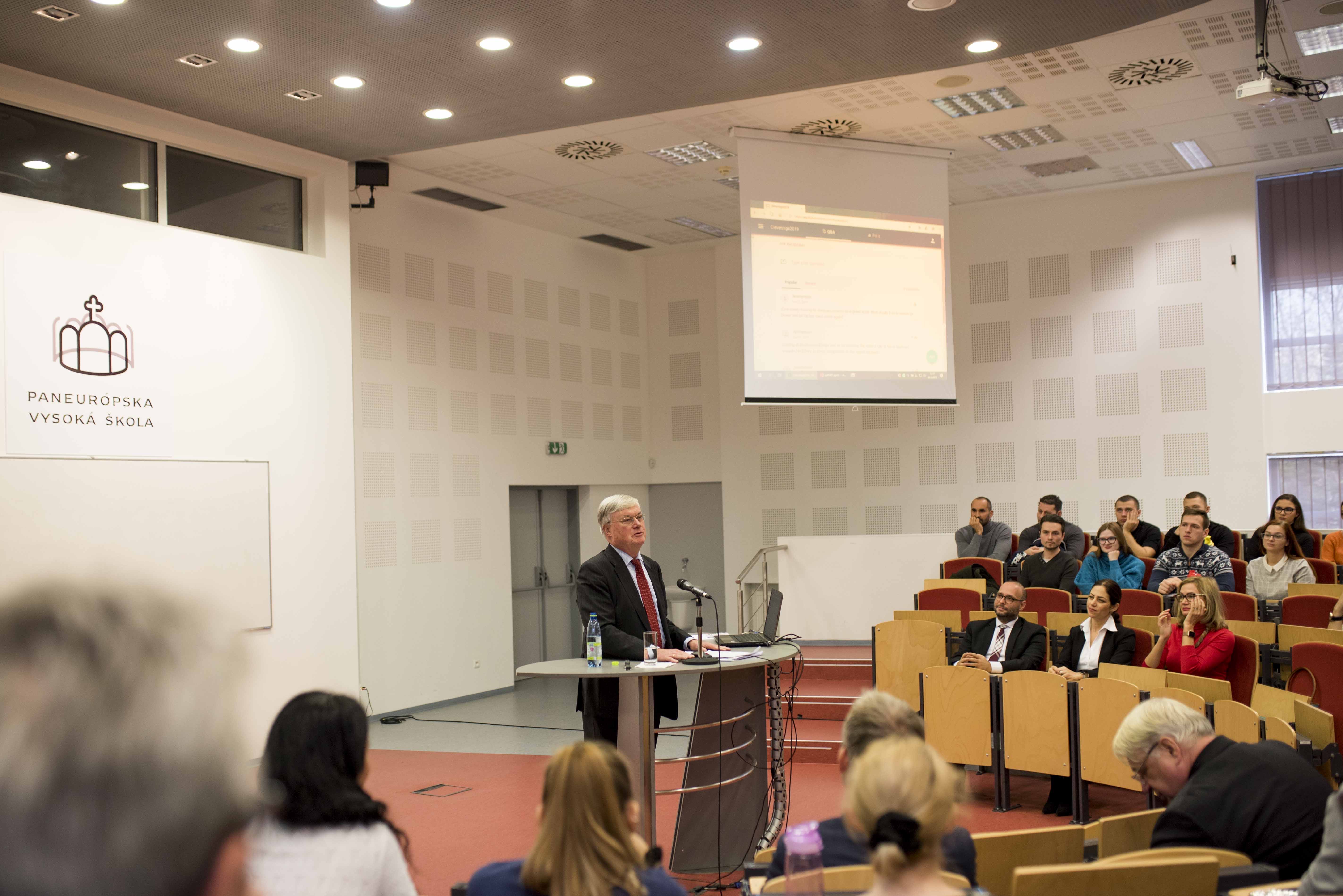 Ďakujeme Jaap de Zwaan-ovi, profesorovi na Univerzite v Rotterdame, za podnetnú prednášku, ktorá sa uskutočnila v spolupráci s Holandským veľvyslanectvom a Fakultou práva PEVŠ dňa 4. 12. 2019 v aule Odeon.