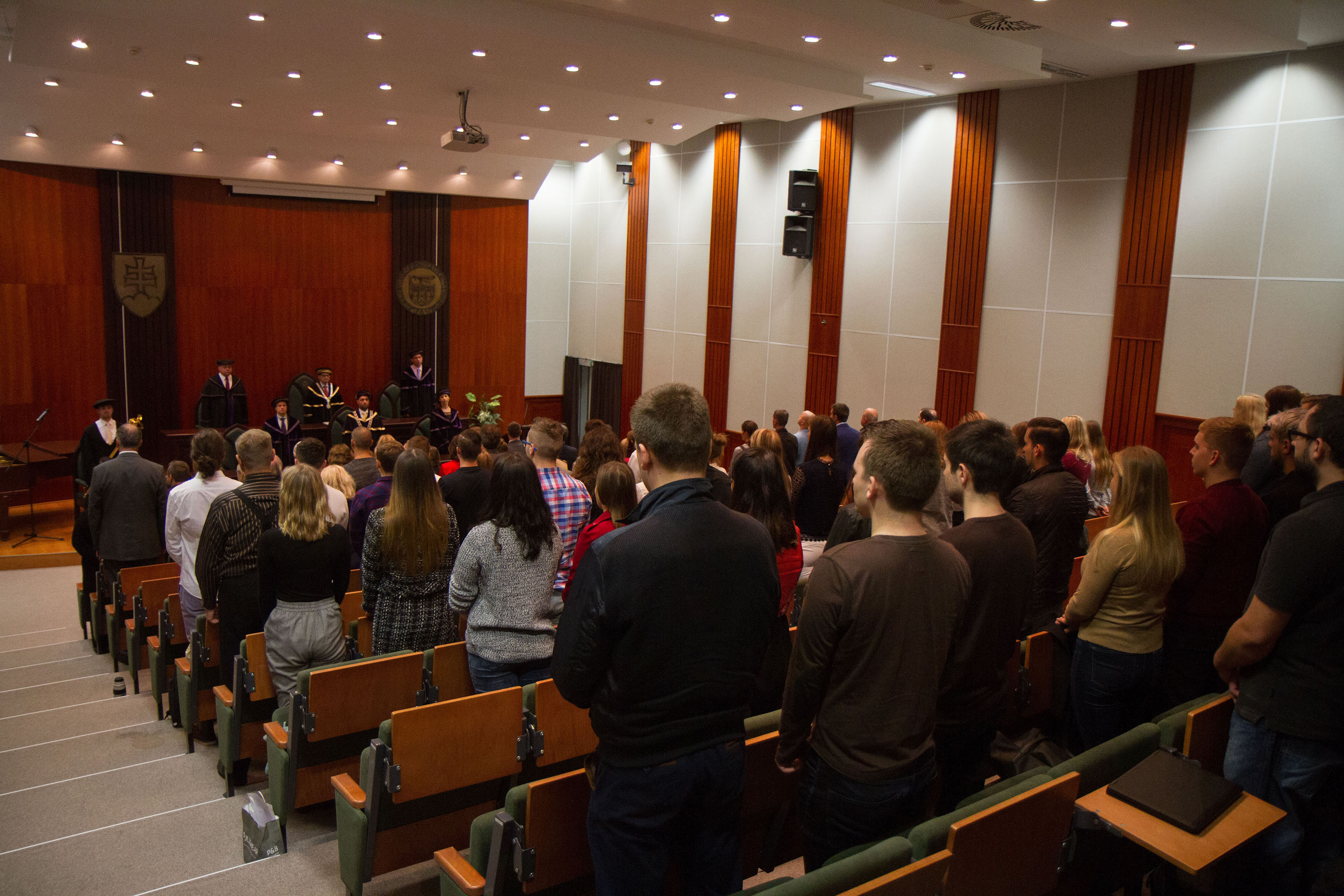 Bodku za slávnostným zhromaždením dal milý a hodnotný kultúrny program študentov cirkevného konzervatória v Bratislave, aby sa na záver programu rozozneli už len takty študentského hymnusu Gaudeamus igitur.
