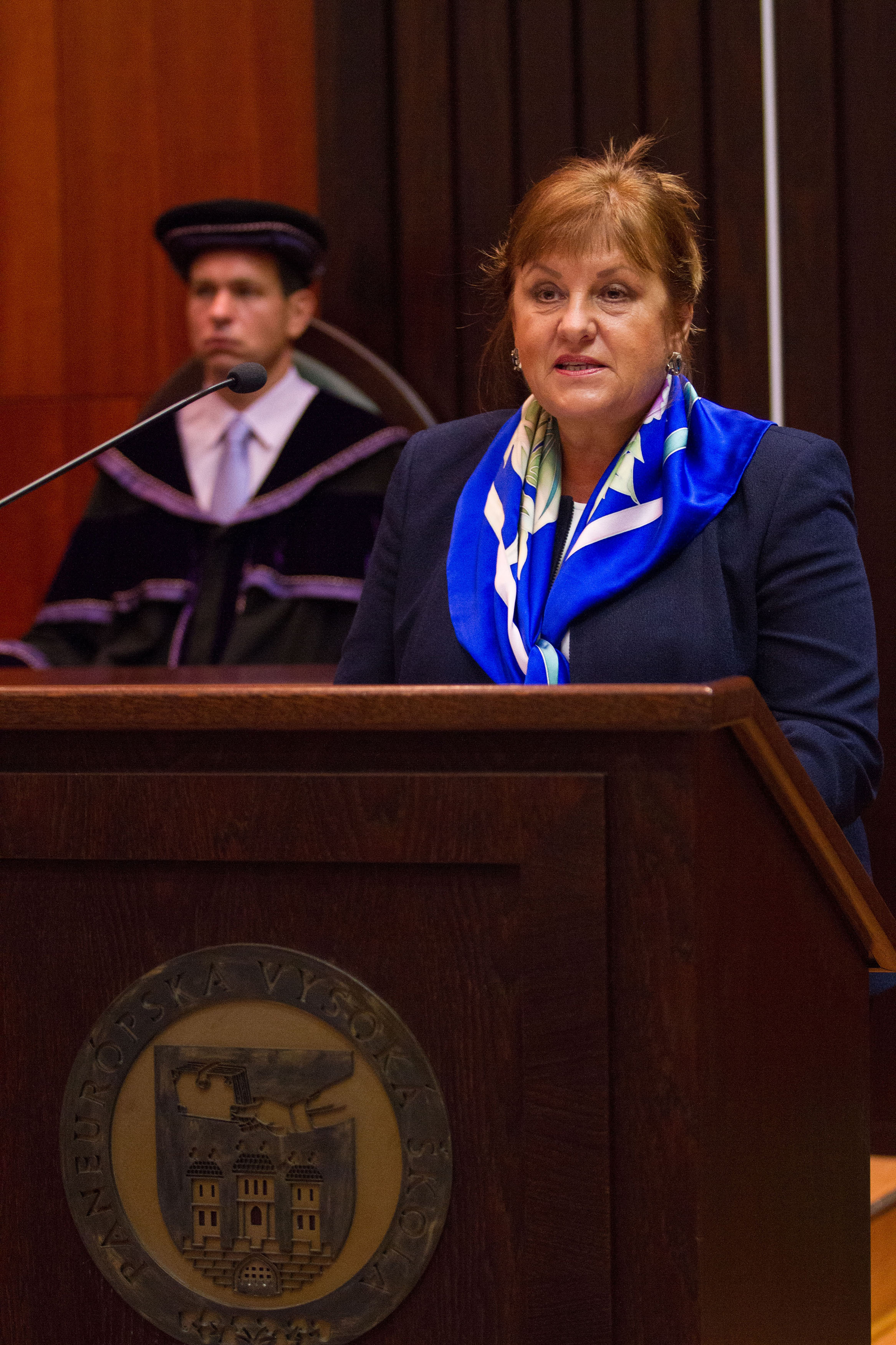 S ďalšími príhovormi vystúpili aj pozvaní hostia. JUDr. Jarmila Urbancová – podpredsedníčka Najvyššieho súdu SR. popriala úspešný rok študentom i zamestnancom. „Právo sa dá naučiť, ale až prax ukáže, či právnik dokáže vnímať len paragrafy, alebo vidieť za každým prípadom aj človeka,“ odkázala počas príhovoru budúcim právnikom. „Budem sa tešiť na našu ďalšiu spoluprácu,“ dodala. Podpredseda Slovenskej advokátskej komory – JUDr. Ondrej Laciak, PhD. sa vo svojom príhovore dotkol aj aktuálnej témy dĺžky koncipientskej praxe.  Podľa jeho slov, pri prvých absolventoch päťročnej koncipientskej praxe môžeme bilancovať, ako sa predĺženie praxe prejavilo na kvalite prípravy. Ako však prízvukoval, je potrebné prepájať teóriu s praxou, pretože prax v advokácii nemá nahrádzať univerzitné vzdelanie.