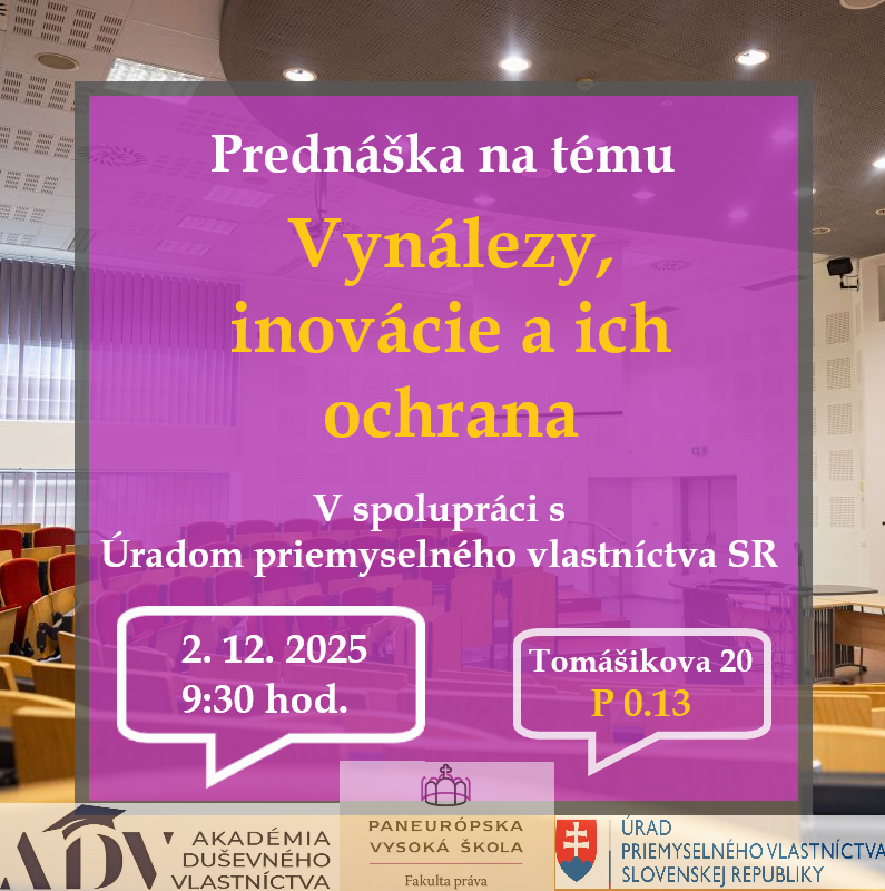 Miesto: Fakulta práva PEVŠ Tomášikova 20, miestnosť P 0.13