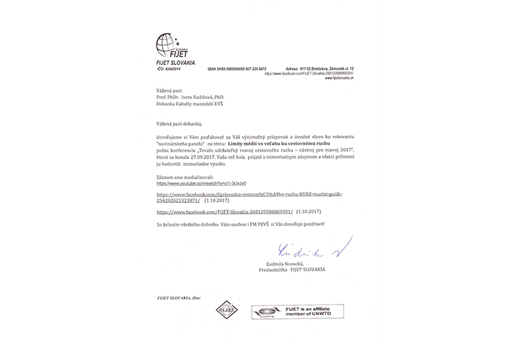 Pani dekanka, prof. PhDr. Iveta Radičová, PhD. svojim úvodným slovom otovorila rokovanie “novinárskeho panela” na tému: Limity médií vo vzťahu ku cestovnému ruchu v rámci konferencie „Trvalo udržateľný rozvoj cestovného ruchu – nástroj pre rozvoj 2017“.
