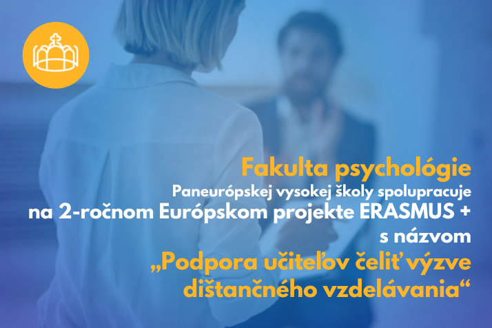 Fakulta psychológie Paneurópskej vysokej školy v Bratislave spolupracuje na 2-ročnom Európskom projekte ERASMUS + s názvom „Podpora učiteľov čeliť výzve dištančného vzdelávania“ (2020-1-LV01-KA226-SCH-094599). Ďalšími partermi projektu sú Univerzita vo Viľnuse, Litva a Univerzita v Rige, Lotyšsko, ktorá projekt ako hlavný koordinátor manažuje.