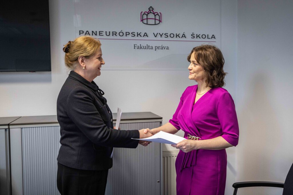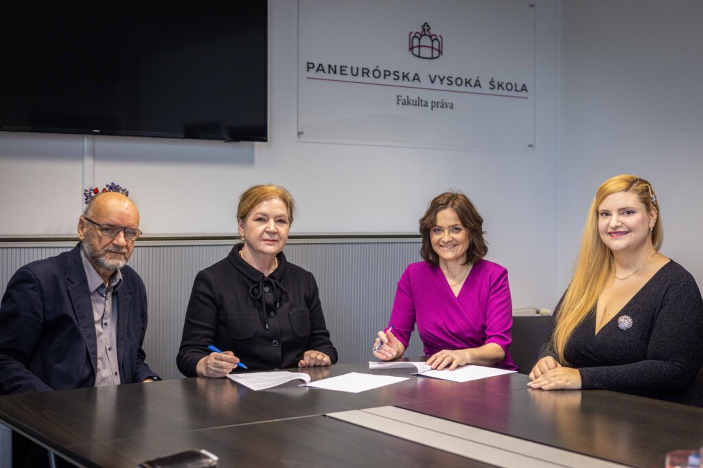 Zástupcovia občianskeho združenia – PhDr. Mgr. Alena Dušatková a PhDr. Jozef Tinka, PhD. a dekanka, doc. JUDr. Katarína Šmigová, PhD., LL.M spolu s prodekankou fakulty, doc. PhDr. JUDr. Lillou Garayovou, PhD., LL.M. svojimi podpismi memoranda umožnili našim študentom nové možnosti stáží, vzájomné konzultácie odborníkov, upevňovanie teoretických vedomostí a získavanie praktických zručností, ako aj konfrontovanie teoretických poznatkov v úzkom spojení študentov FP PEVŠ s praxou.