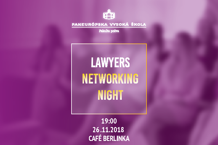 Exkluzívne stretnutie advokátskych kancelárií s absolventmi a študentmi Fakulty práva Paneurópskej vysokej školy sa uskutoční v pondelok 26. novembra 2018 o 19:00 v Berlinka Café Slovenskej národnej galérie.