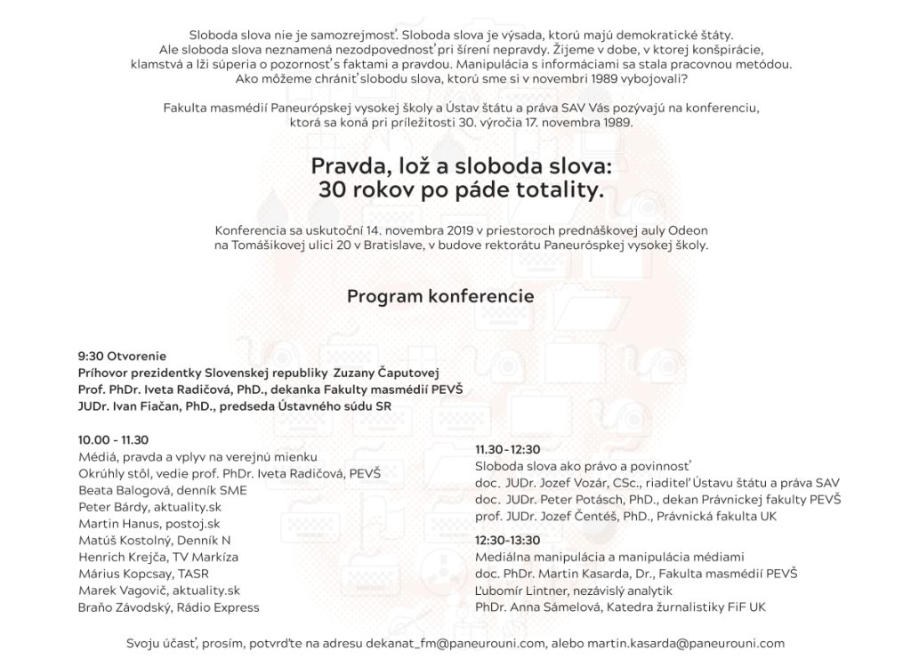 Vážené kolegyne, vážení kolegovia, v mene Fakulty práva Paneurópskej vysokej.