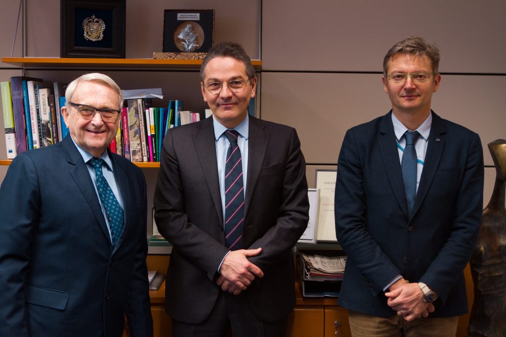 Veľvýslanec Francúzskej republiky Christophe Léonzi a atasé pre vedecú spoluprácu a spoluprácu s vysokými školami François-Xavier Mortreuil dnes navštívili Paneurópsku vysokú školu. Predstaviteľov Francúzska privítal rektor Paneurópskej vysokej školy, prof. Juraj Stern.