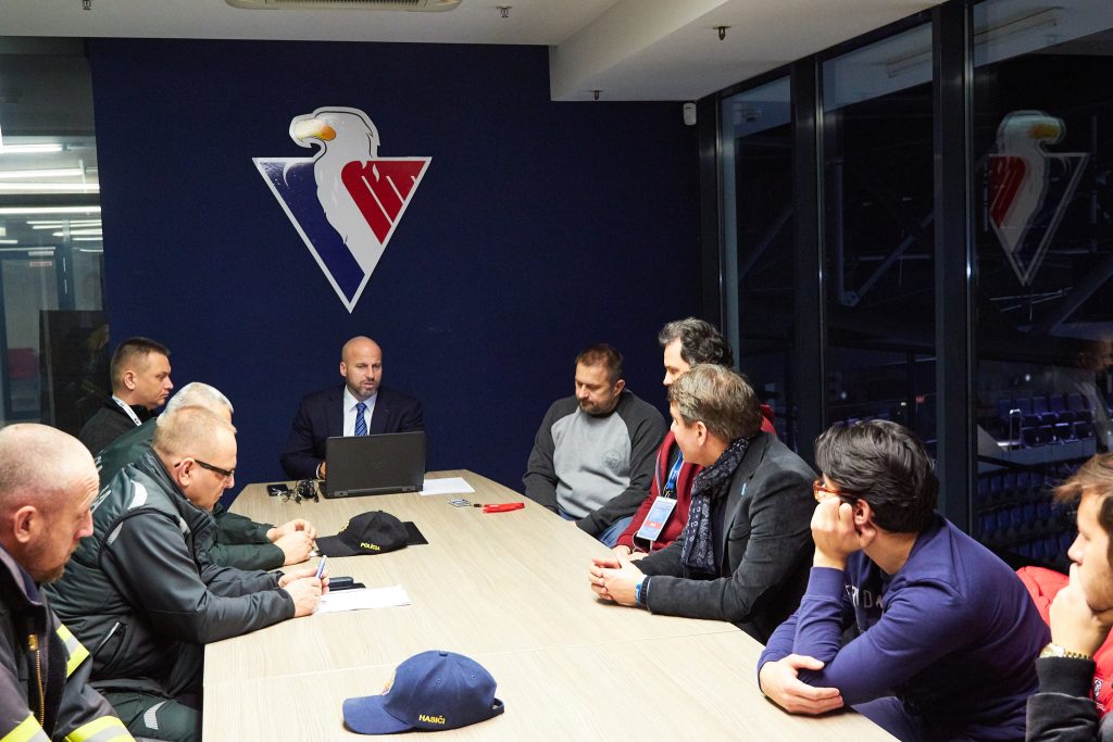 - Predzápasová bezpečnostná porada v zmysle reglementu KHL