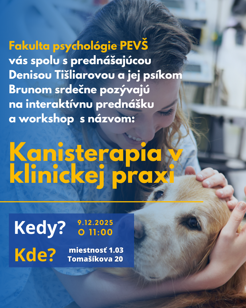 📅 9. 12. sa na Fakulte psychológie uskutoční interaktívna prednáška a praktický workshop zameraný na kanisterapiu v klinickej praxi.