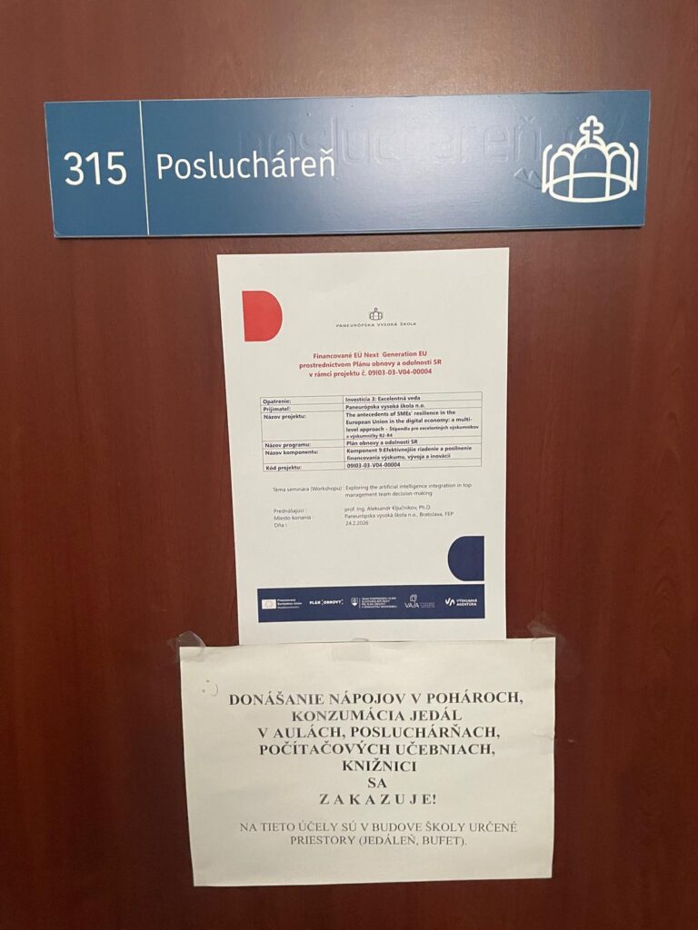 Seminár (Workshop): Exploring the artificial intelligence integration in top management team decision-making