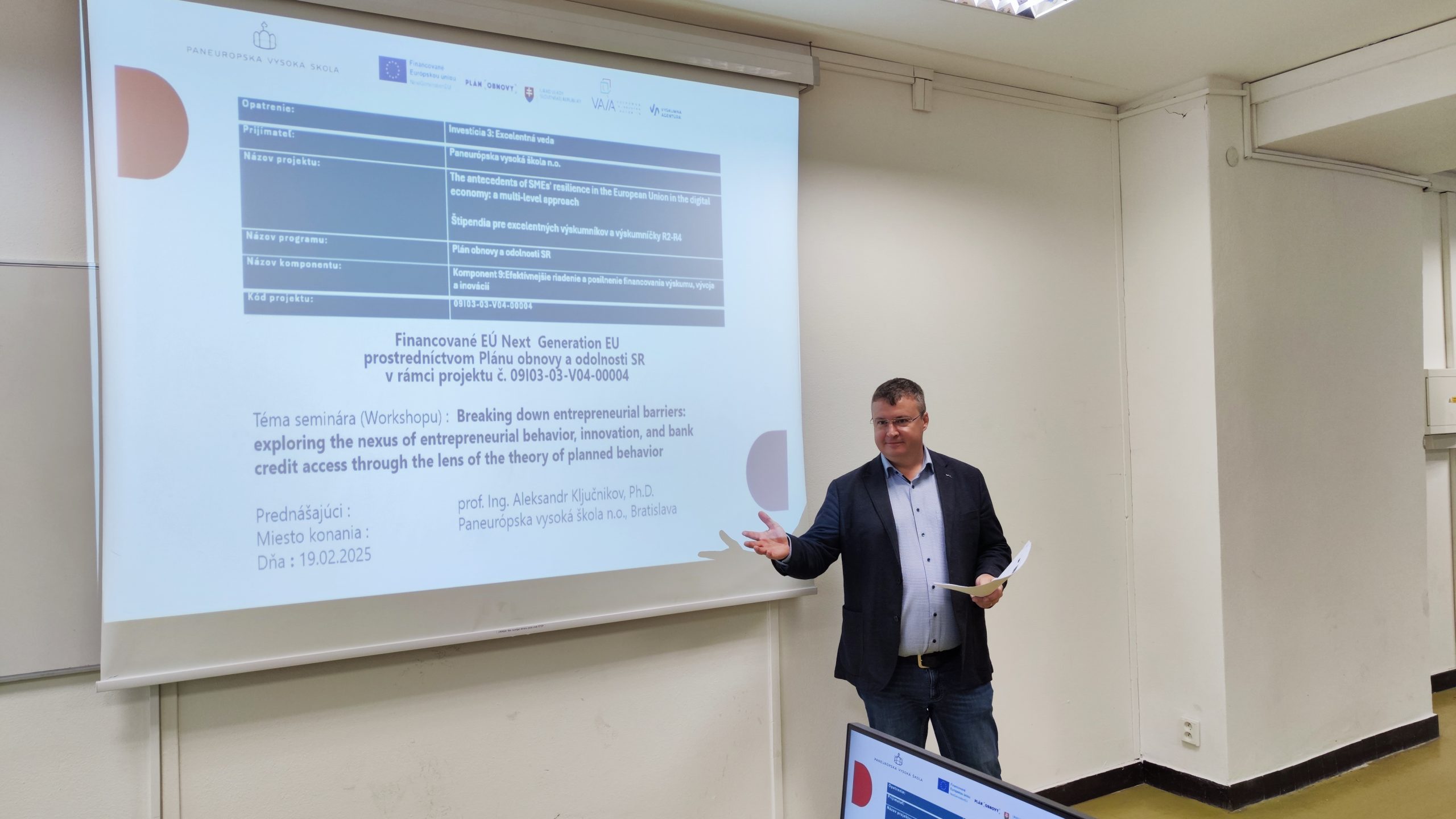 Seminár (Workshop) : Breaking down entrepreneurial barriers: exploring the nexus of entrepreneurial behavior, innovation, and bank credit access through the lens of the theory of planned behavior